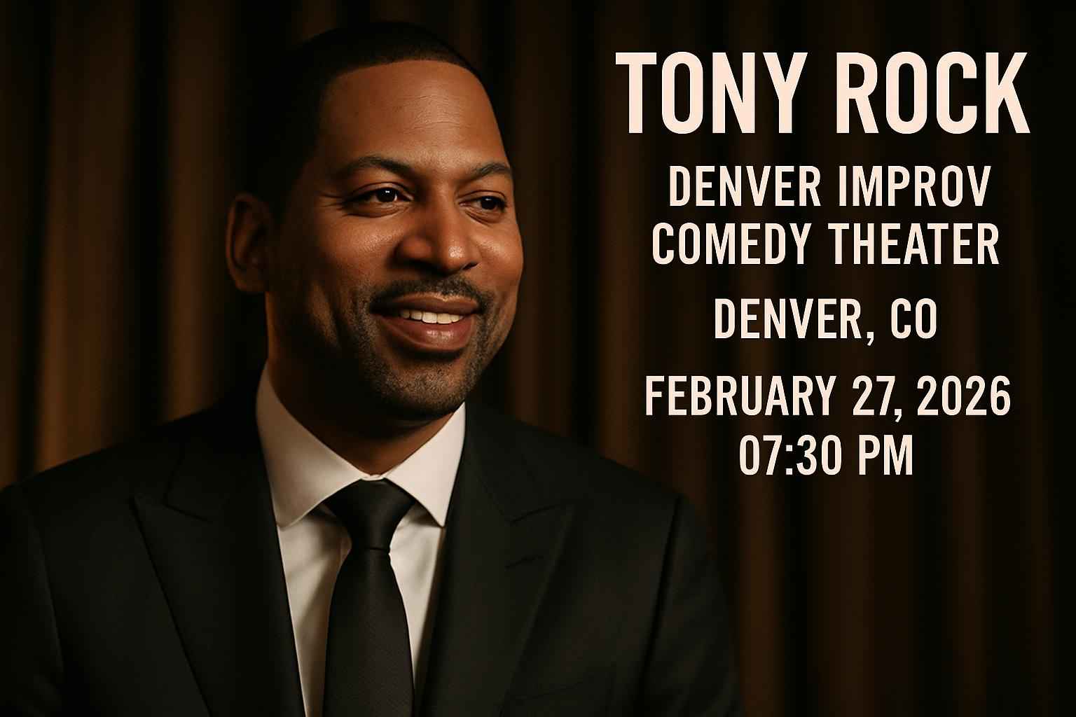 TLDR: Experience Tony Rock live at Denver Improv Comedy Theater on February 27, 2026, at 7:30 PM. Secure your tickets early through RSVP Event Agency to access exclusive coupon codes and discounts. Enjoy a night of sharp, high-energy comedy in a top Denver venue with verified promo codes and last-minute deals available.