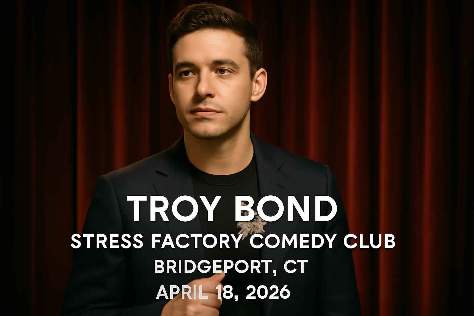 Troy Bond takes the stage at Stress Factory Comedy Club located in downtown Bridgeport CT on April 17 2026 at 0930 PM. This event attracts fans seeking top stand-up comedy in Fairfield County and surrounding areas. The venue features a full-service bar and dining menu so arrive early to enjoy the complete experience. Search high-intent terms like Troy Bond Bridgeport tickets Stress Factory event info or comedy shows near me for more event insights.