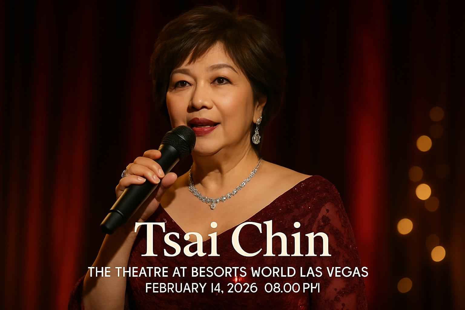 The Tsai Chin concert at The Theatre at Resorts World Las Vegas begins at 8 PM on February 14, 2026. This highly anticipated Mandarin music event brings Tsai Chins iconic hits and heartfelt performances to an elite Las Vegas stage. Fans searching for Las Vegas concert dates artist setlists or Resorts World Las Vegas events will find clear ticket and schedule information here. Secure your seat for this romantic Valentine event in the heart of the Las Vegas Strip.