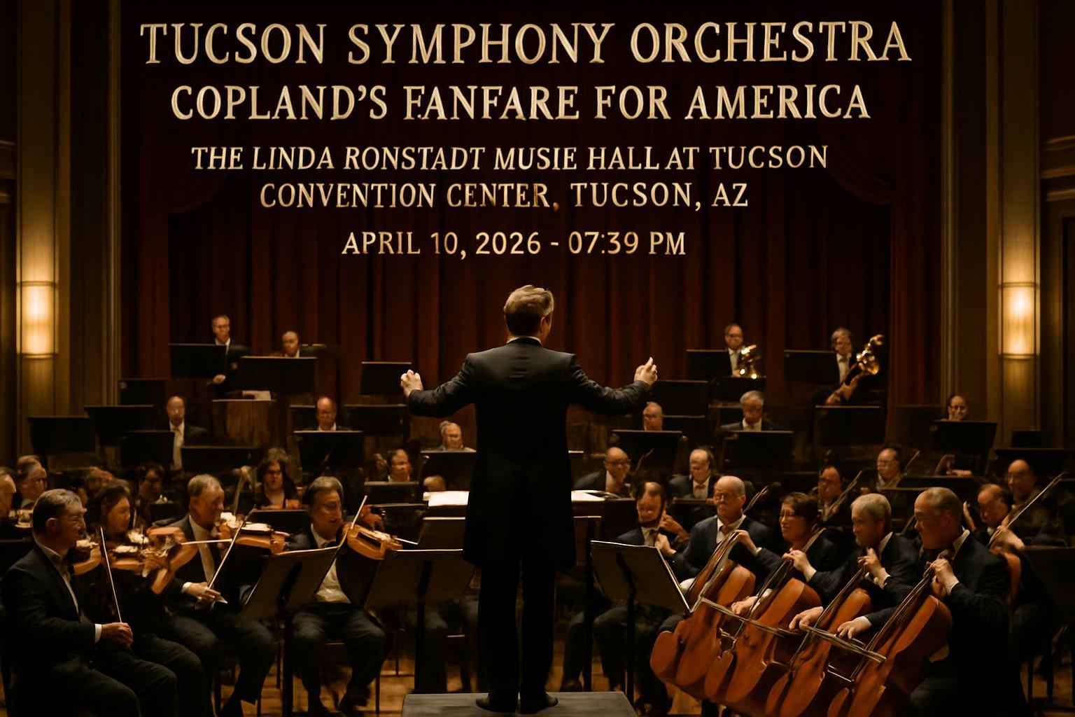 Experience a powerful evening of American music with Tucson Symphony Orchestra Coplands Fanfare for America at The Linda Ronstadt Music Hall at Tucson Convention Center on April 10 2026 at 0730 PM. This highly anticipated performance features iconic works including Aaron Coplands legendary Fanfare for the Common Man and other celebrated American composers. Join Tucson locals and visitors for an unforgettable night in the heart of downtown Tucson and discover why this event draws music lovers from across Arizona.