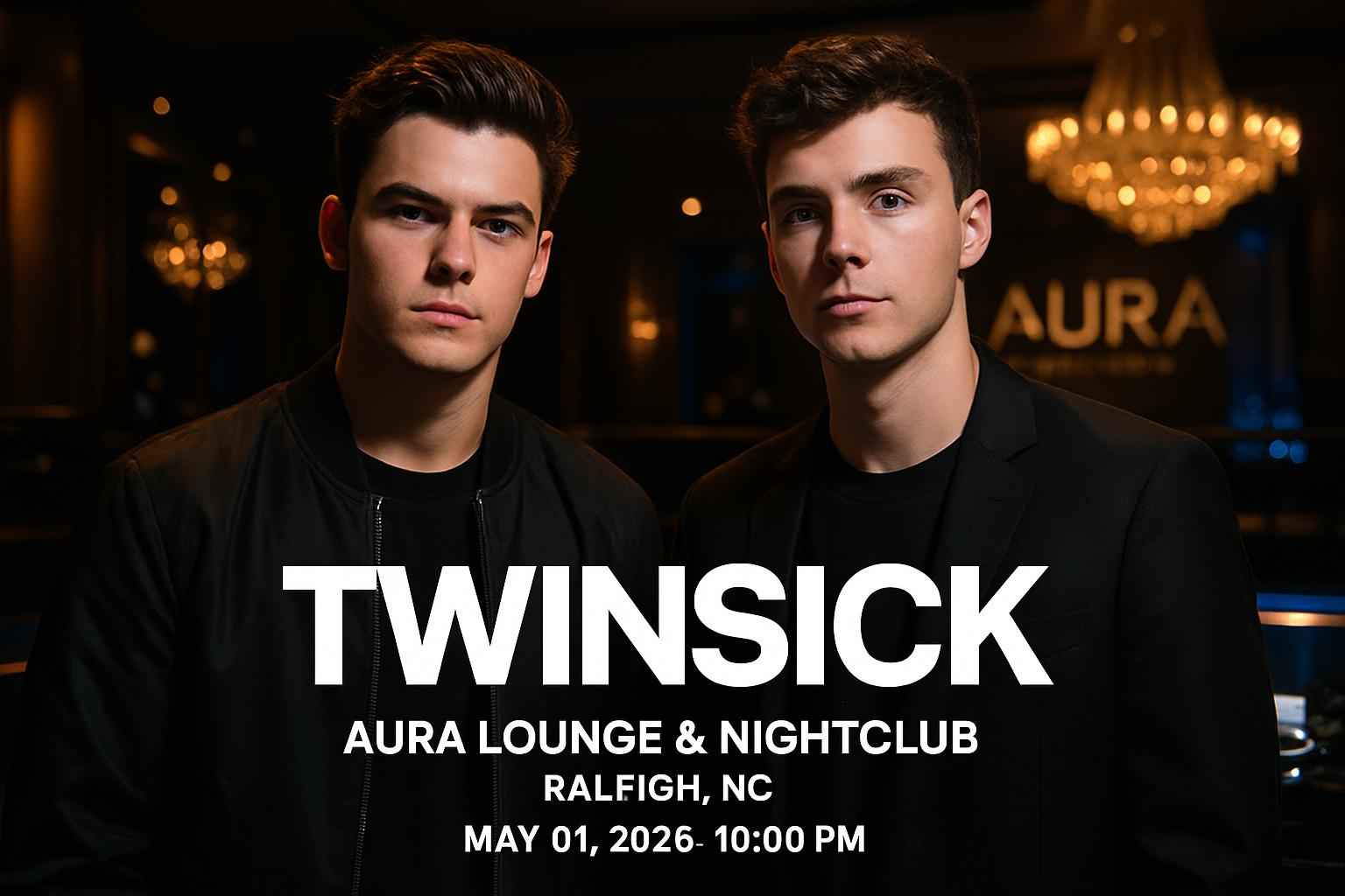 Twinsick at Aura Lounge and Nightclub in Raleigh NC brings an electrifying night of EDM and dance music on May 01 2026 starting at 10 PM. Experience chart-topping tracks and live DJ sets in a vibrant local nightlife destination. Discover how to access Twinsick Aura Lounge Nightclub coupon codes for exclusive savings on tickets and VIP packages. RSVP Event Agency is your trusted source for verified promo codes and event details.