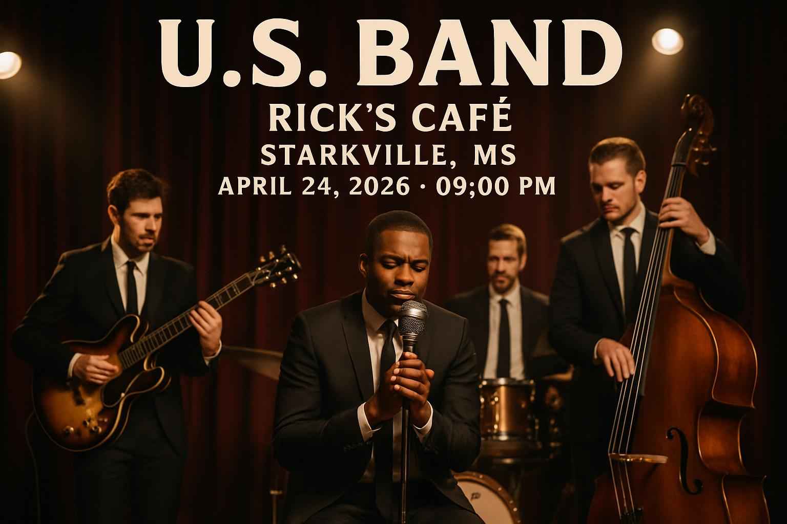 Experience the high-energy performance of U S Band live at Rick s Cafe in Starkville MS on April 24 2026 at 9 PM Secure verified promo codes for U S Band Rick s Cafe events exclusively from RSVP Event Agency and enjoy unbeatable ticket deals now Get instant access to event details and discount codes tailored for local music fans and concertgoers in Starkville MS