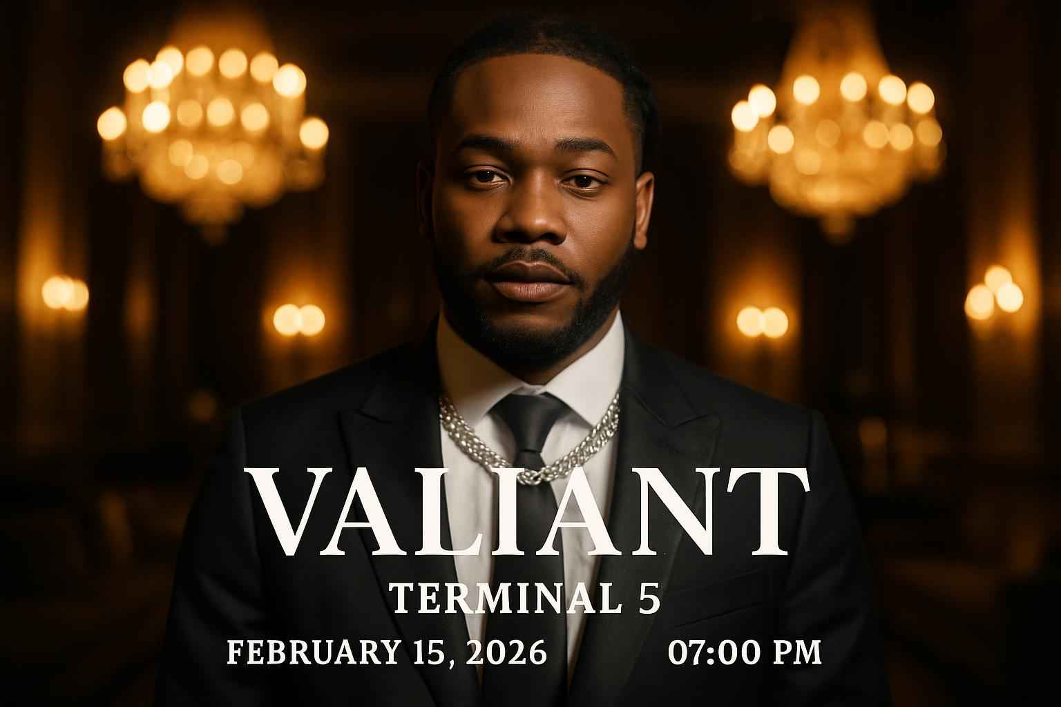 Valiant at Terminal 5 begins at 0700 PM on February 15 2026 Doors open prior to showtime for early entry
