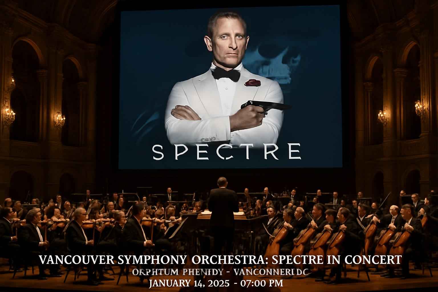 Experience Spectre in Concert with the Vancouver Symphony Orchestra live at Orpheum Theatre, Vancouver, on January 14, 2026, at 7 PM. Enjoy the iconic James Bond film screened alongside a live symphonic performance. Secure tickets early using exclusive promo codes from RSVP Event Agency for discounts. Limited availability—act fast for this unique cinematic and musical event.