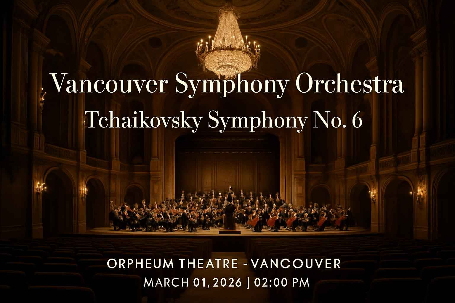 TLDR: Experience the Vancouver Symphony Orchestra performing Tchaikovsky’s Symphony No. 6 at Orpheum Theatre, Vancouver, on March 1, 2026, at 2 PM. Secure discounted tickets with exclusive RSVP Event Agency promo codes. Enjoy world-class acoustics, a historic venue, and convenient downtown access for an unforgettable classical music event. Limited deals available—book early!