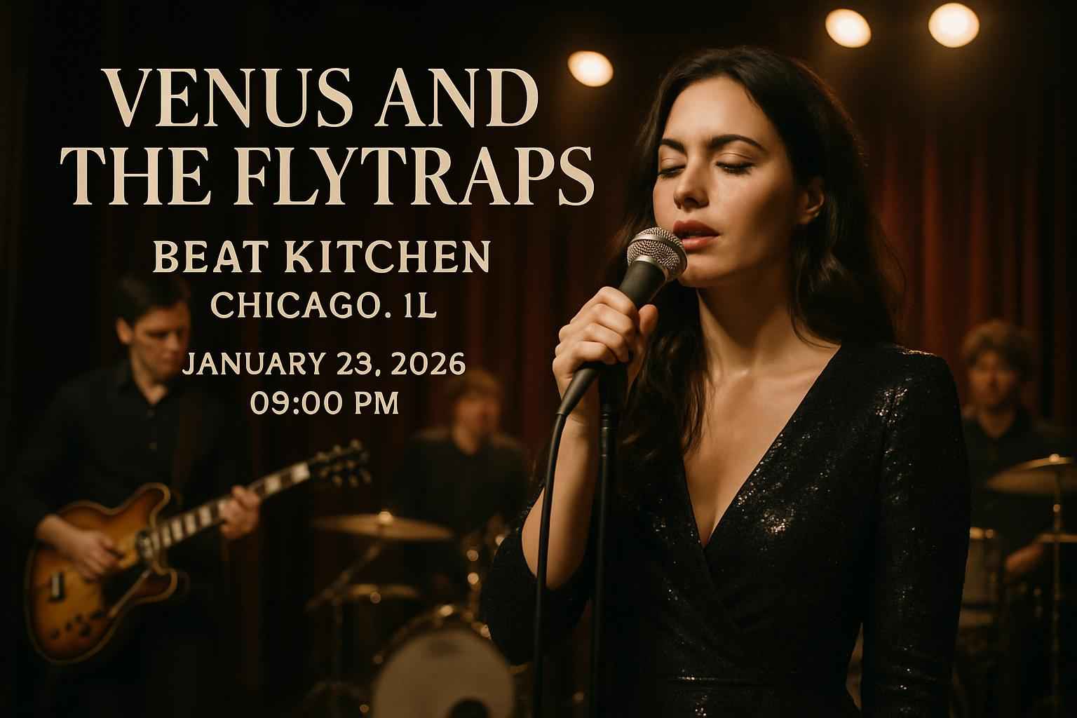 Venus and the Flytraps are bringing their genre-defying performance to Beat Kitchen Chicago IL for one night only. The show begins at 8 PM on January 29 2026. Beat Kitchen is known for hosting top indie and alternative acts in an intimate setting perfect for fans seeking an authentic live music experience in Chicago. Doors open early for premium seating and merchandise access.