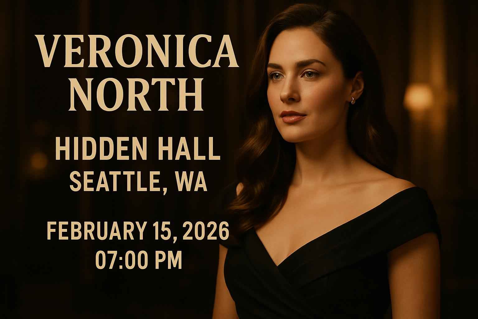 Veronica North brings her unforgettable performance style to Hidden Hall Seattle delivering a night filled with energy and unforgettable music. Hidden Hall is renowned for its outstanding acoustics and welcoming atmosphere making it one of the most sought-after event venues in Washington. The concert begins at 0700 PM so arrive early to enjoy nearby dining and vibrant local music culture in downtown Seattle.