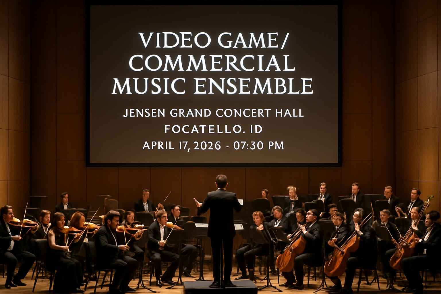 Join gaming and music fans at Jensen Grand Concert Hall in Pocatello for a one-night-only Video Game and Commercial Music Ensemble showcase. The event starts at 0730 PM sharp on April 17 2026. Located in the heart of Pocatello this concert features live music from top video game titles and award-winning commercial compositions. Search for concert tickets and secure the best seats for this must-see musical event in Southeast Idaho.