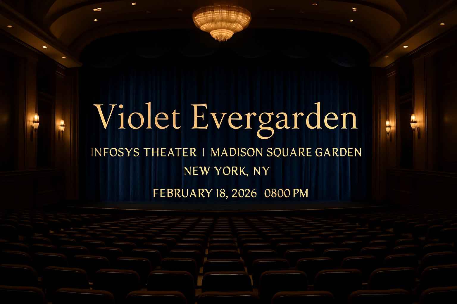 Experience the acclaimed Violet Evergarden live at Infosys Theater at Madison Square Garden in New York NY on February 18 2026 at 0800 PM. This highly anticipated anime event blends breathtaking animation with an immersive soundtrack creating an unforgettable evening for fans. Secure exclusive Violet Evergarden event promo codes from RSVP Event Agency for unbeatable value and top seating options in New York.