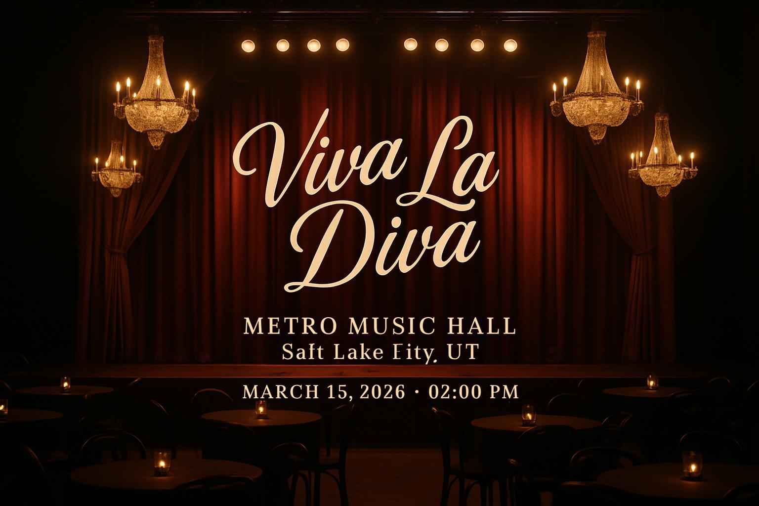 Viva La Diva at Metro Music Hall in Salt Lake City starts at 2:00 PM on March 15 2026.