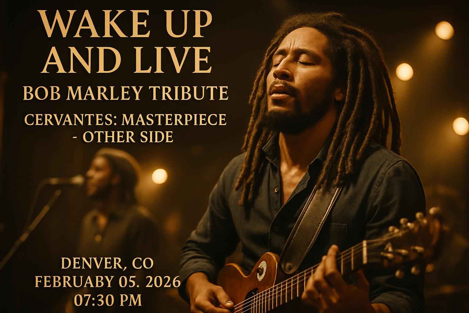 Experience the Wake Up and Live – Bob Marley Tribute on February 5, 2026, at Cervantes Masterpiece – Other Side in Denver. Enjoy authentic reggae hits with top tribute artists. Secure tickets early using exclusive coupon codes from RSVP Event Agency for discounts. Arrive early for the best seating and a vibrant concert atmosphere celebrating Bob Marley's legacy.