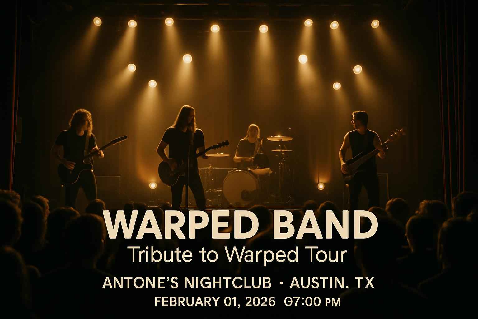 Warped Band – Tribute to Warped Tour delivers a setlist packed with favorite hits from the legendary tours of the 2000s and beyond. The event takes place at Antone’s Nightclub one of Austin’s most iconic live venues situated downtown for easy access. Doors open at 7 PM on February 01 2026. Enjoy a night of authentic tribute performances and relive the spirit of pop punk and alternative rock live in Austin. Find Warped Band tickets local to Austin and get all updates on show times and venue info.