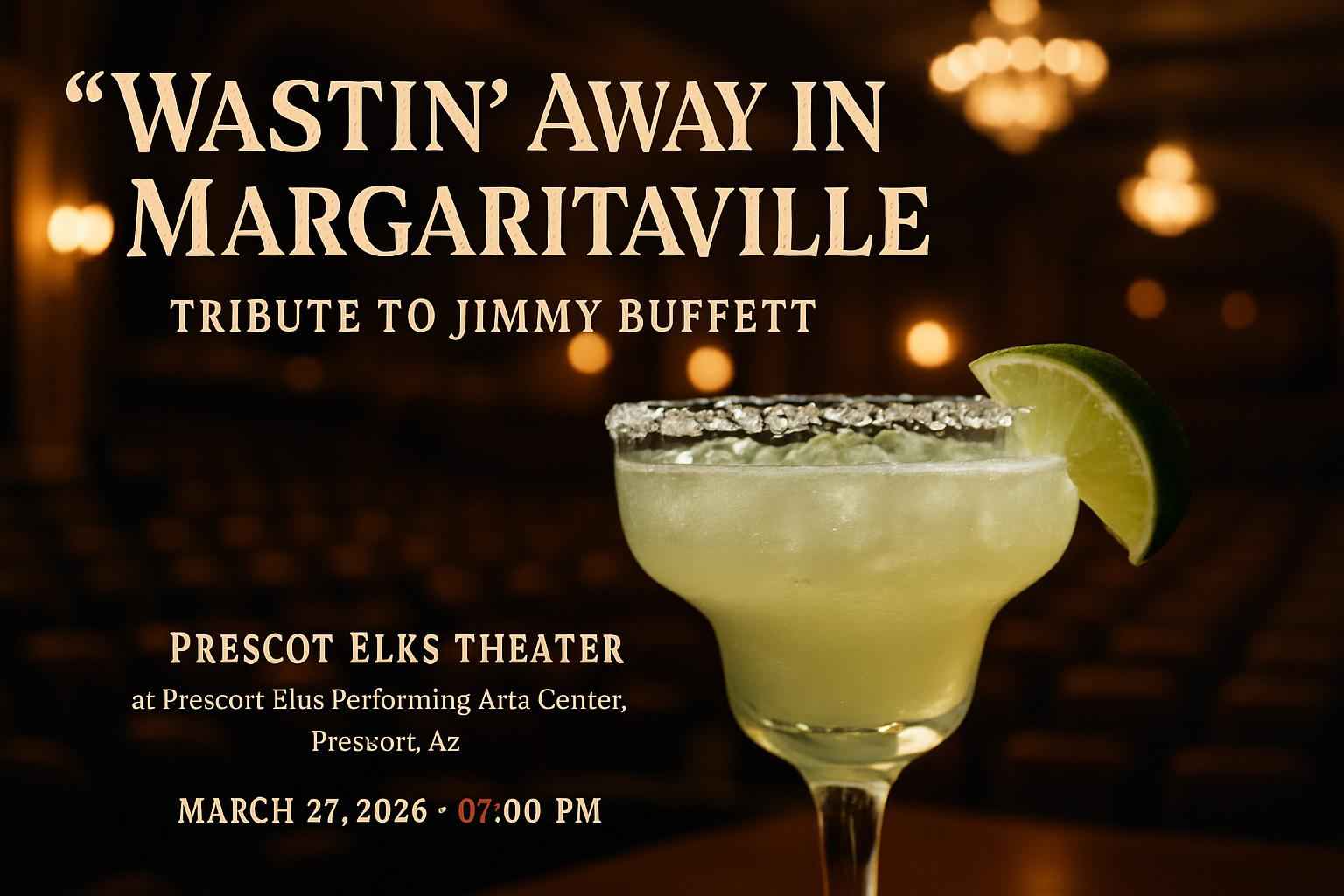 Wastin Away in Margaritaville is a live tribute concert celebrating the music and legacy of Jimmy Buffett performed at Prescott Elks Theater in Prescott AZ.