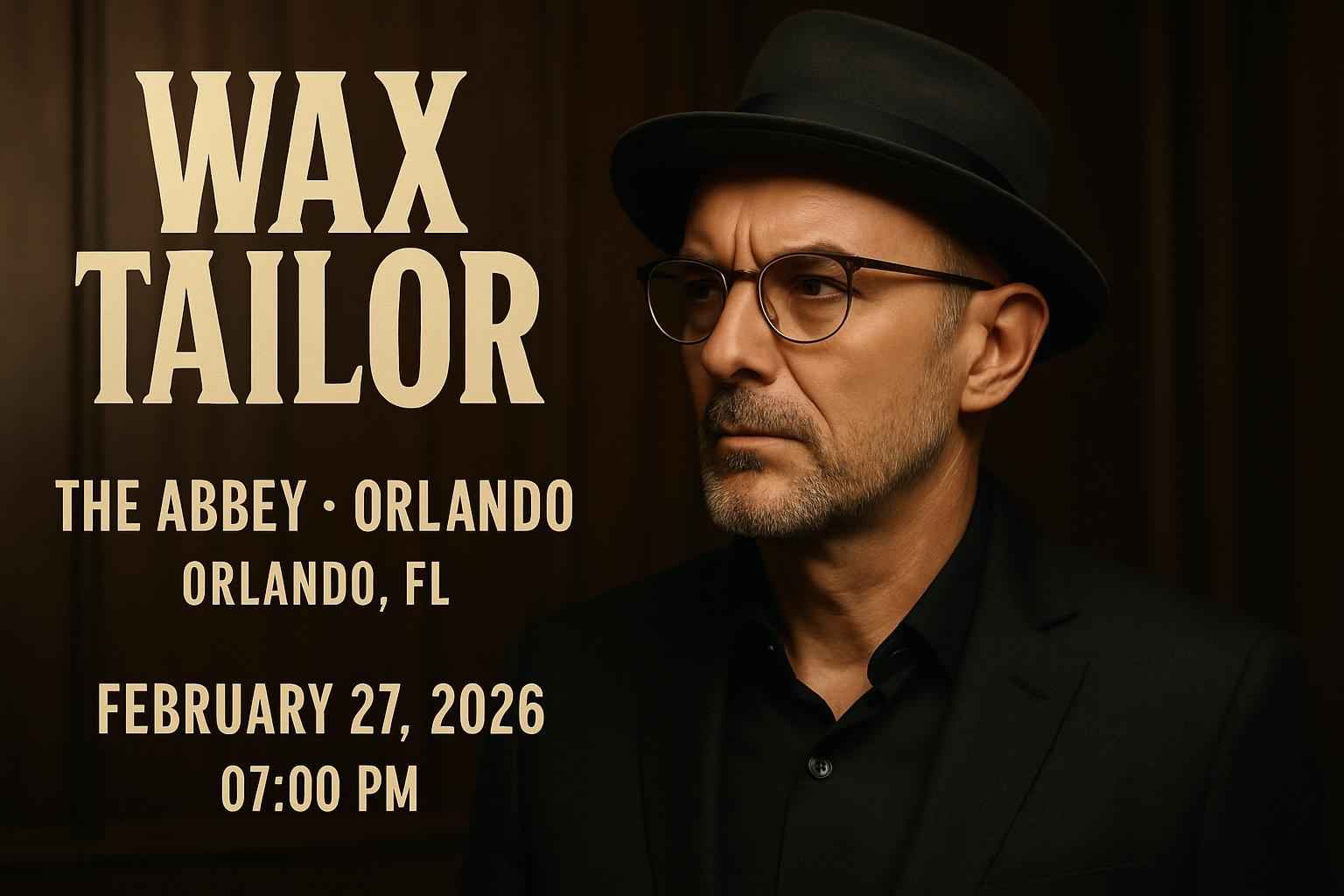 Wax Tailor is scheduled to begin at 700 PM on February 27 2026 at The Abbey in Orlando FL. Doors typically open at 600 PM.
