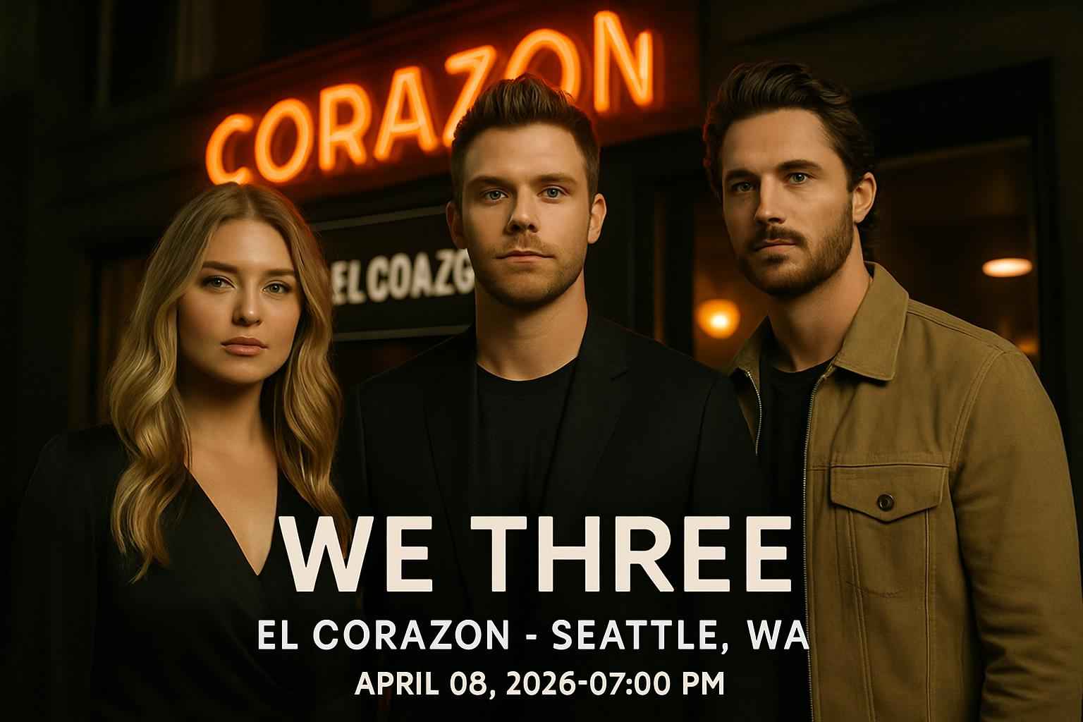 We Three Band brings their chart-topping alternative pop sound to El Corazon Seattle WA. The live show starts at 0700 PM on April 09 2026. Fans can expect powerful performances and a high-energy setlist featuring crowd favorites. El Corazon is located in the heart of Seattle close to top dining and parking options making it the ideal concert venue for locals and visitors.