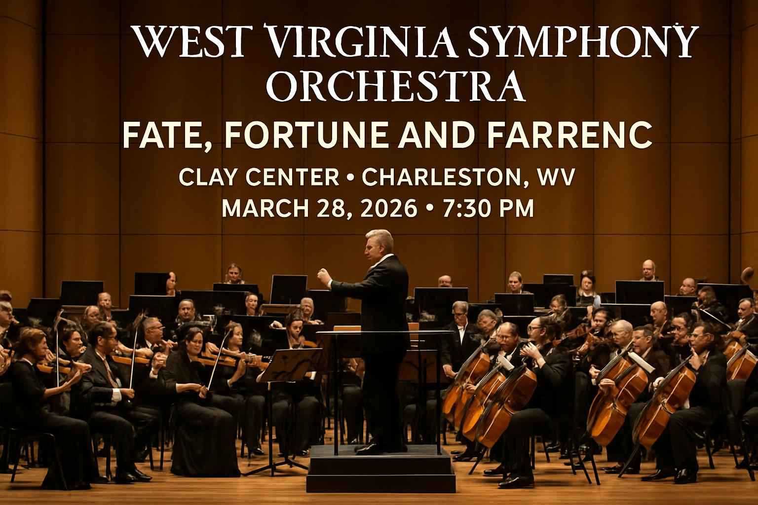 Experience the West Virginia Symphony Orchestra Fate Fortune and Farrenc live at the Clay Center in Charleston WV on March 28 2026 at 0730 PM. This highly anticipated performance blends classical masterpieces with the energy of live orchestral music offering an unforgettable evening for music lovers in the heart of Charleston. Secure your spot for a night where fate and fortune meet musical artistry.