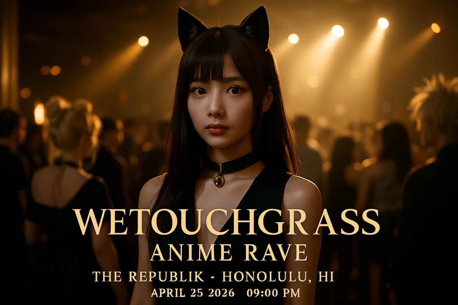 WeTouchGrass Anime Rave takes place on April 25 2026 starting at 9 PM at The Republik in Honolulu Hawaii.