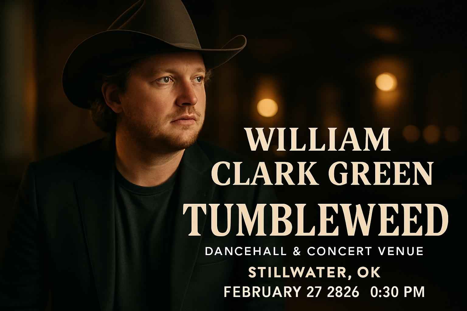 Experience Texas country music live at William Clark Green – Tumbleweed Dancehall & Concert Venue in Stillwater OK on February 27 2026 at 9:30 PM. Secure verified tickets and exclusive coupon codes from RSVP Event Agency to guarantee the lowest prices and best seats available today. Tumbleweed Dancehall is known for its vibrant atmosphere and top-tier sound quality making this a must-see event for music fans in Stillwater and North Central Oklahoma.
