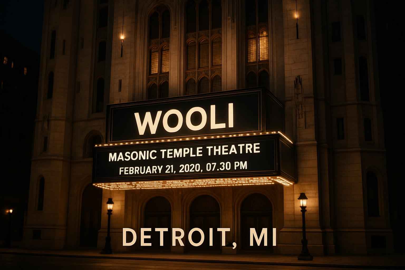 Wooli headlines the Masonic Temple Theatre located at 500 Temple St Detroit MI 48201. The show starts at 0730 PM on February 21 2026. Doors open early to accommodate fans eager to experience a powerful blend of melodic dubstep and bass music. The venue is known for stellar acoustics and a historic atmosphere providing an unforgettable Detroit live music night.