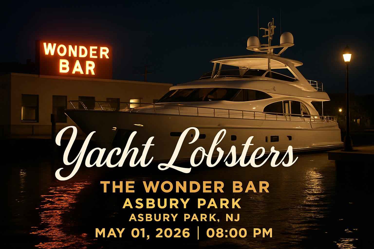 Yacht Lobsters takes the stage at 8 PM on May 01 2026 at The Wonder Bar in Asbury Park NJ. Early arrival is recommended for best seating and access.