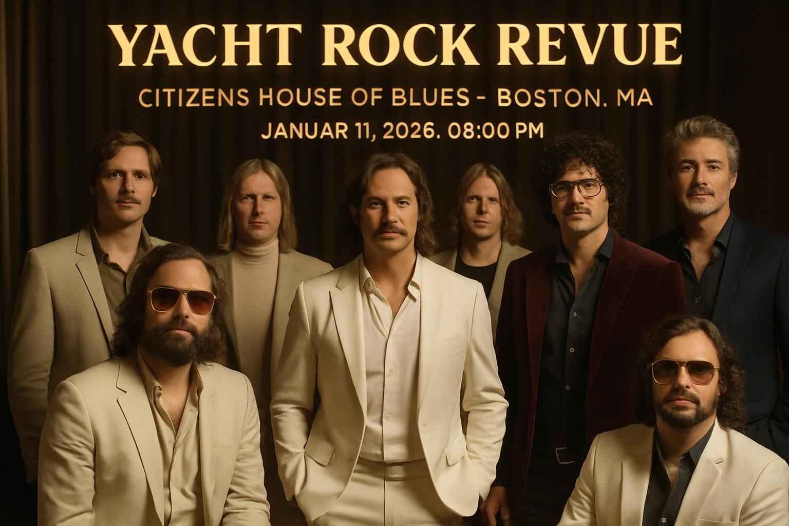Yacht Rock Revue brings their signature smooth rock sound to Citizens House Of Blues Boston located in downtown Boston MA. On January 11 2026 enjoy a nostalgic evening filled with classic yacht rock hits and a vibrant crowd. Easily find tickets for Yacht Rock Revue Boston and access venue details directions and parking info for a seamless event experience.