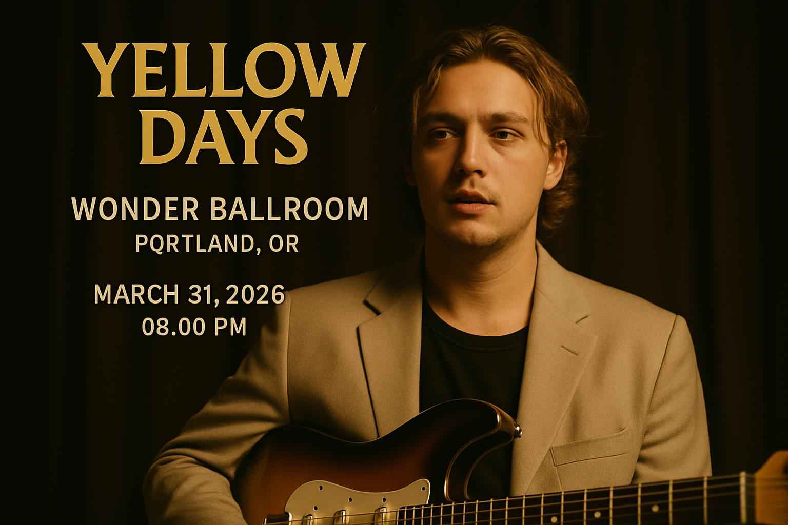 Experience Yellow Days live at Wonder Ballroom in Portland OR on March 31 2026 at 8:00 PM. Secure your spot at this unforgettable event featuring soulful indie sounds and an electric atmosphere. RSVP Event Agency offers exclusive coupon codes and promo deals for Yellow Days tickets. Get valuable savings and detailed event information below.