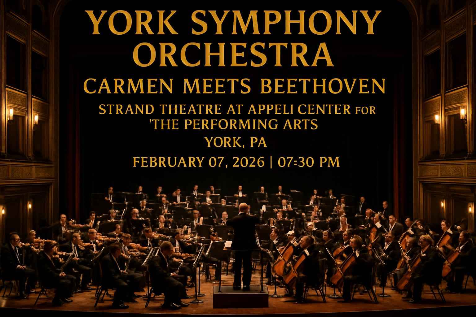 Experience a night of music at the York Symphony Orchestra Carmen Meets Beethoven at Strand Theatre at Appell Center for the Performing Arts in York PA on February 07 2026 at 07:30 PM. This highly anticipated performance blends the passion of Carmen with the timeless brilliance of Beethoven for an unforgettable event in the heart of York. Search for exclusive coupon codes and promo offers through RSVP Event Agency to secure the best ticket discounts today.