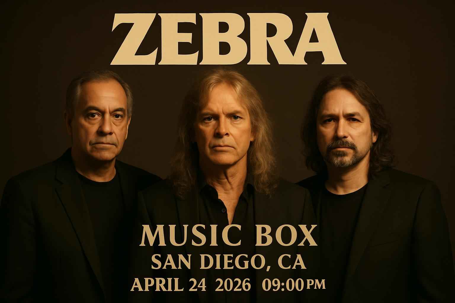 Zebra brings their acclaimed show to Music Box located at 1337 India Street San Diego CA. Doors open at 8 PM and the concert starts promptly at 9 PM on April 24 2026. Enjoy the best sound and lighting in downtown San Diego while listening to Zebra perform their greatest hits live. Attendees can expect an unforgettable evening at one of California’s top music venues.